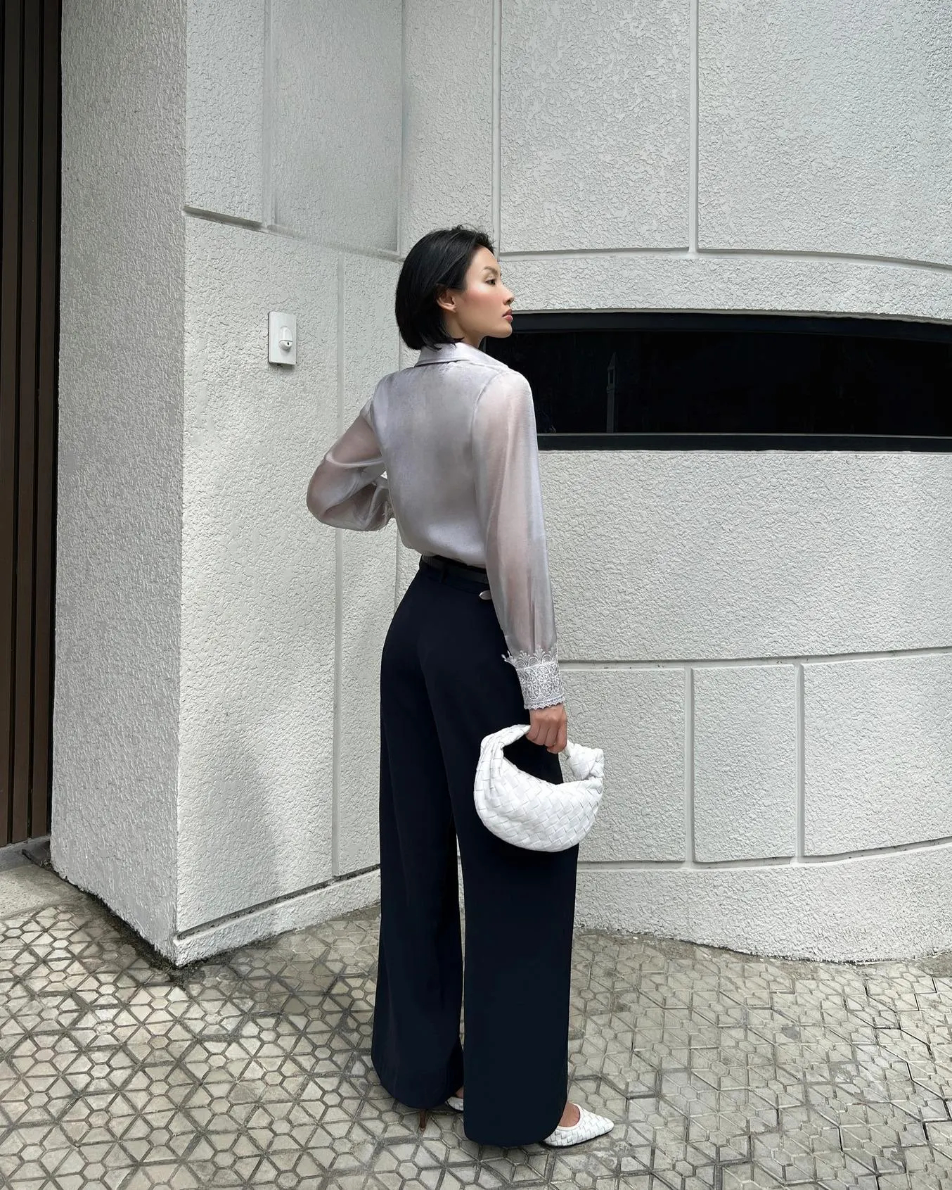 Pair with black slim-fit trousers and heels for a sophisticated professional or business look.